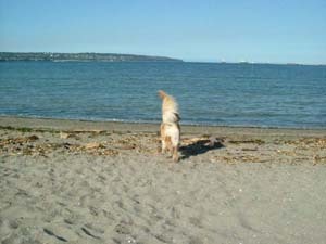 溫哥華城市內就有海灘. 我們位於海灘旁的公寓不准許住戶養狗,所以八八與我淪落到了旅社住宿.